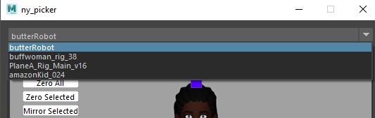After having seen some pickers I decided to write my own picker and wanted to see what I can accomplish with it. I designed the GUI with QtDesigner. It’s extremely handy and it’s not difficult to get it work on Maya. These are the body and facial tabs.